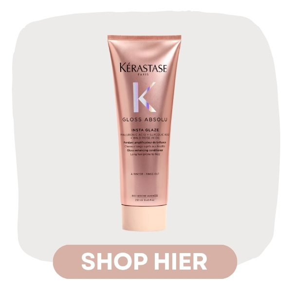 De Kérastase Gloss Absolu Insta Glaze geeft het haar direct meer zachtheid en glans, zonder het te verzwaren. Laat het kort inwerken en spoel goed uit voor een gladde, gezonde finish.
