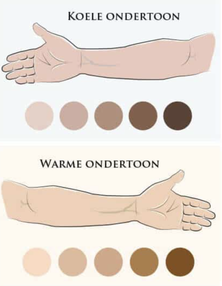 Koele ondertoon: Bij een koele ondertoon is de huid vaak wat rozig, rood of blauwig. De ogen zij groen of blauw van kleur en de aderen blauw